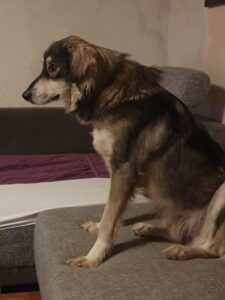 Milo haben wir im Januar 2025 schwer verletzt aufgefunden. Er hatte eine große Wunde auf dem Rücken. Wahrscheinlich wurde er von anderen Hunden bei der Futtersuche attackiert.