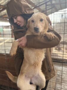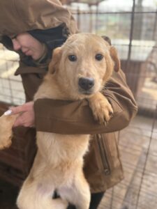 Betsy und ihre Schwester Blondy wurden auf einem Feld gesichtet. Die zwei jungen Hunde waren dort ihrem Schicksal ausgesetzt.