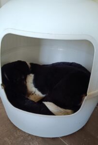 du bist gut auf deiner Pflegestelle angekommen und hast dir einen sicheren Platz in der Katzenhöhle gesucht.