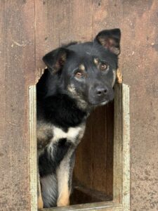 Caddy hat sich bei uns öffnen können. Er freut sich, wenn wir in den Zwinger kommen und fordert Aufmerksamkeit ein.