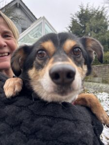 His physical wounds have healed. At the shelter, he is open to his fellow dogs and is starting to trust them. He is also developing trust in the people he knows and is happy, but still reserved, to be spoken to and given attention.