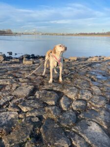 Schon am Ankunftstag hast du überrascht und bist der Einladung der vorhandenen Hunde auf der Pflegestelle gefolgt, um dein neues Zuhause zu erkunden.