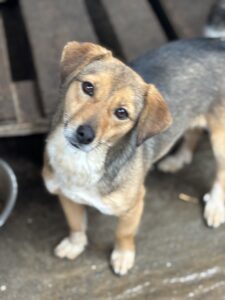 Lilli haben wir allein mit zwei Welpen gefunden. Sie war hilflos der Versorgung ihrer kleinen Familie ausgesetzt.