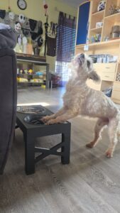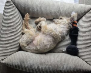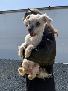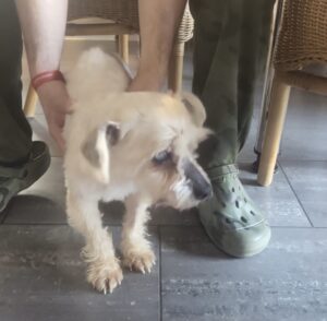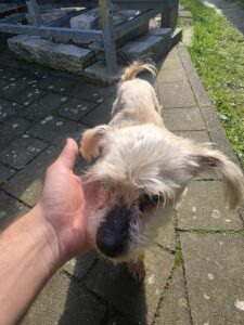 Er hatte ganz verfilztes und verschmutztes Fell. Wir mussten ihn erst einmal scheren und baden.