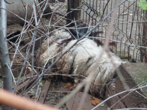 He had been kept in a small, filthy shed for many years. His condition was indescribably bad. His fur was so long, matted, and dirty that he could barely move.