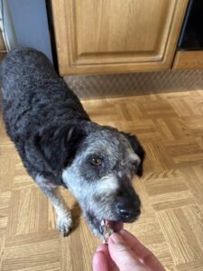Shaggy is a lovely dog. We got her from a municipal animal shelter in February 2025. She was dumped there and separated from her puppies.