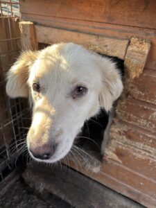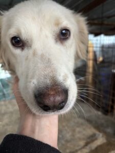 Snow haben wir auf einer Strasse in Targu Jiu gesehen. Sie lief den Menschen hinterher, weil sie verzweifelt auf Futtersuche war. Zum Zeitpunkt ihrer Aufnahme war Snow sehr mager.
