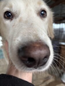 Wenn wir uns jedoch ihrem Zwinger nähern, hüpft sie heraus und möchte gesehen werden. Groß ist ihre Freude, wenn wir Zeit haben und sie kuscheln können. Das genießt Snow sehr.