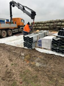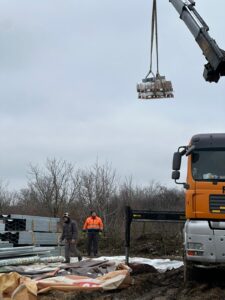 Die Metallkonstruktion für unsere Hallen wurde geliefert.