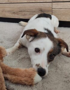 Was für ein grosses Glück! Wir konnten dein Köfferchen packen, um dich auch auf die Reise ins Glück zu schicken. Über eine andere Tierschutzorganisation hast du ein Zuhause gefunden. Da bist du sehr gut angekommen und bist gleich zum kleinen Clown geworden.